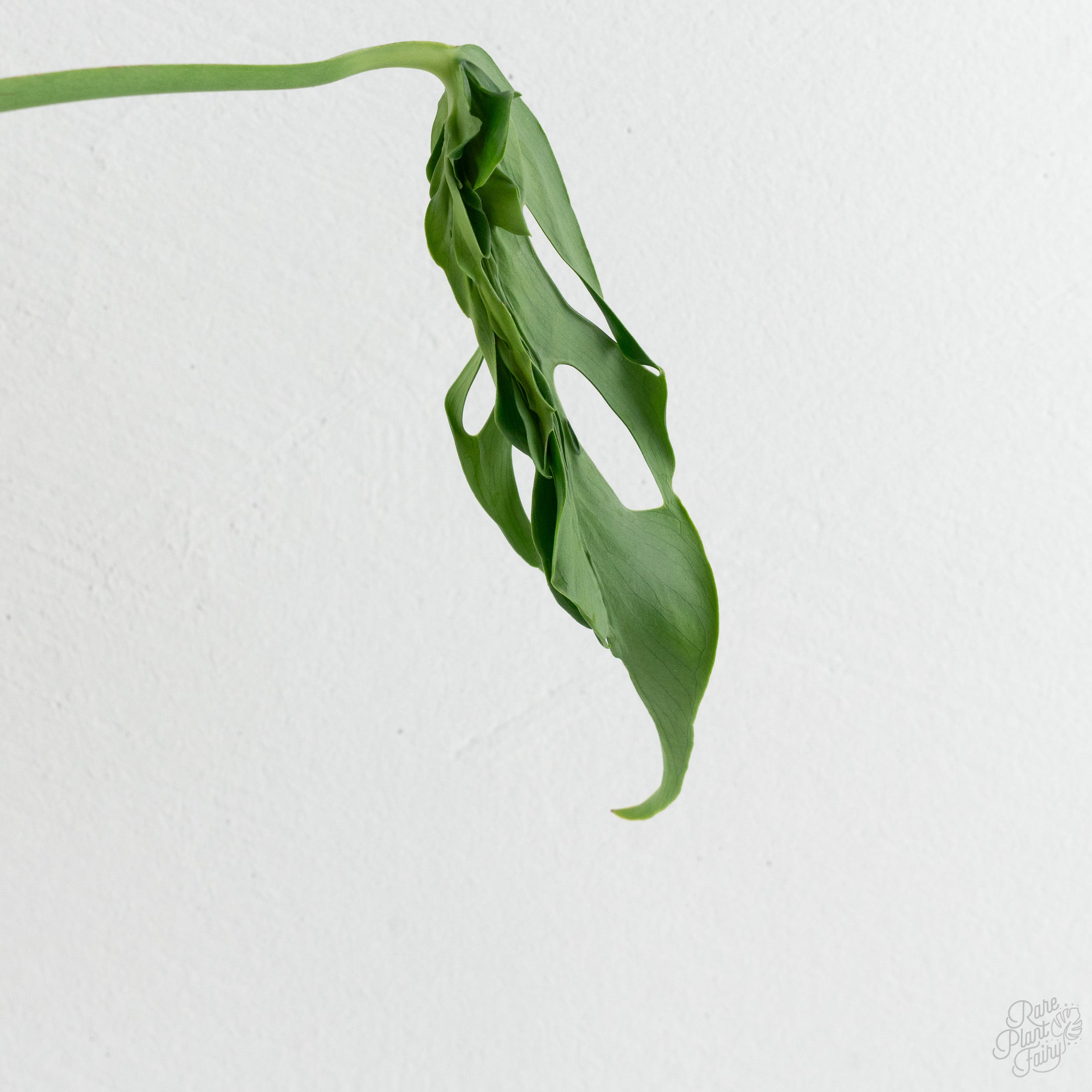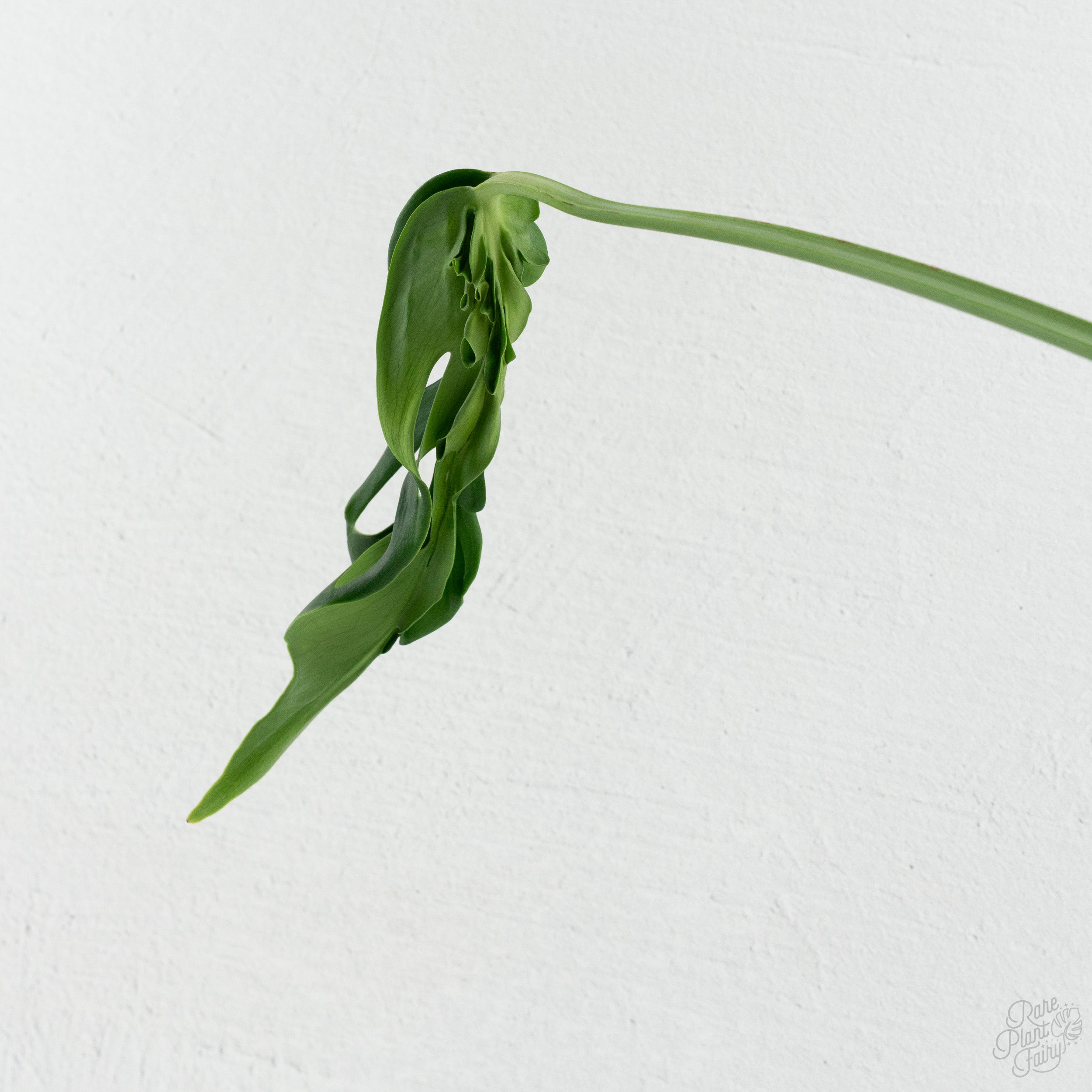This climbing cultivar benefits from support, producing larger and more dramatically deformed leaves as it grows upward. It thrives in bright, indirect light with warm, humid conditions and well-draining, aerated soil, developing bold, unconventional foliage over time.